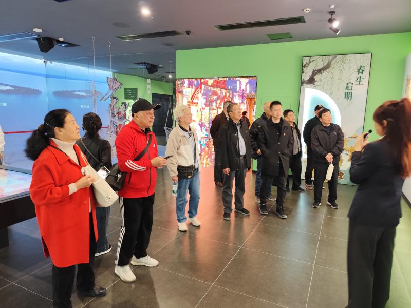 寿县二十四节气馆由原寿县博物馆改造而成,今年刚刚开馆。在讲解员的引导下,大家依次参观了展馆“观时知序”“依时而耕”“循时矩行”“与时共生”四大板块主题展区,通过图文展示、实物陈列等多种形式,生动呈现二十四节气的起源、发展以及与农业生产、民生生活的紧密联系。从“立春”的耕耘播种,到“冬至”的民俗活动,每一个节气都承载着先民顺应自然、尊重规律的智慧,让大家仿佛穿越时空,亲身感受四季轮回、节气更迭的韵律之美。参观过程中,老同志们兴致勃勃,不时驻足观看,与局青年党员相互交流讨论,对现代科技手段传承弘扬传统文化的新形式赞叹不已。