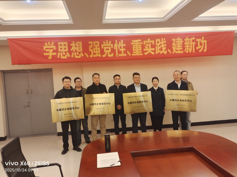 指导组一行首先在淮南国力液压装备有限公司举行了安徽省企业研发中心授牌仪式。安徽乾景宇辰新能源有限公司、安徽坤泰车辆动力科技有限公司、淮南国力液压装备有限公司、中环低碳(安徽)新能源光伏科技有限公司等四家企业被授予“安徽省企业研发中心”称号。